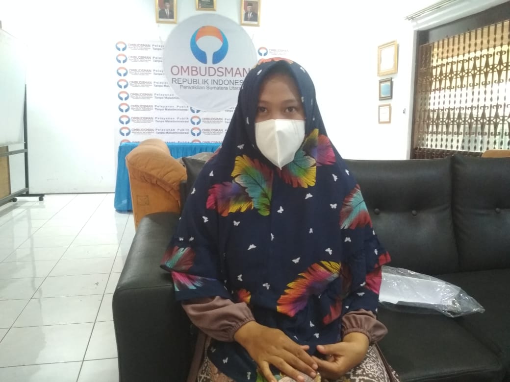 berinisial YE (29) mengadu ke Ombudsman RI Perwakilan Sumut, Jumat (9/7/212021).